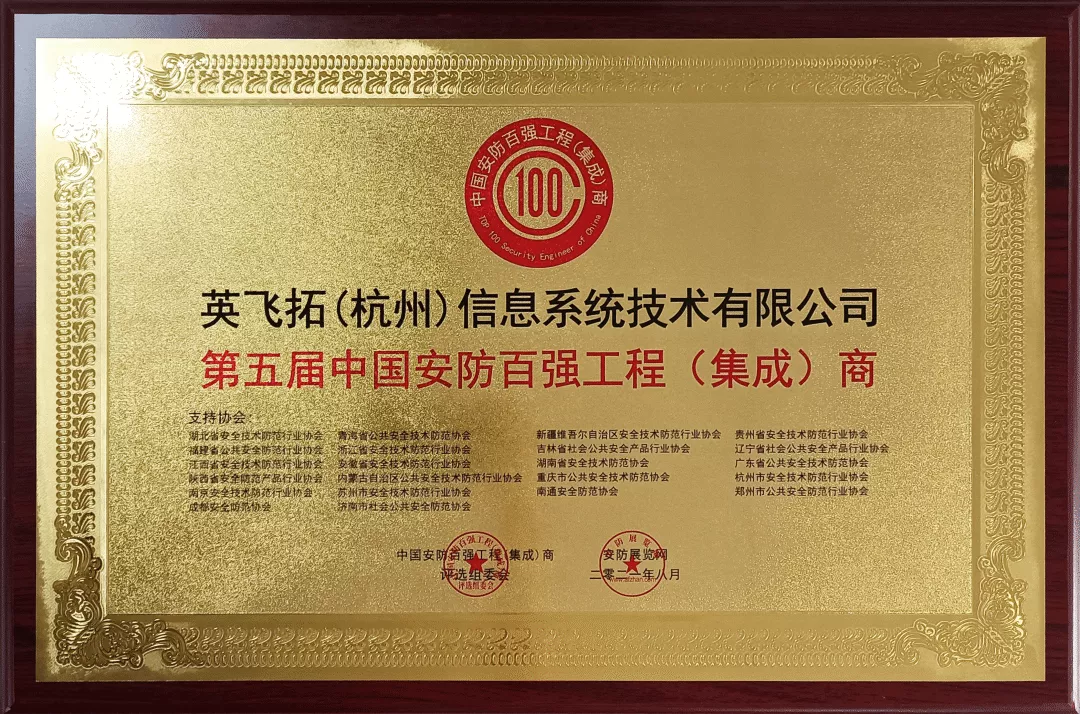 9月24日,第四届中国安防大数据发展高峰论坛暨第五届中国安防行业颁奖盛典在英雄城市湖北武汉顺利召开。本次活动由全国各省、自治区、直辖市安防协会共同举办,得到安防业界积极响应与大力支持。英飞拓系统、银江股份等行业优秀企业共同入选“第五届中国安防百强工程(集成)商”。这是继去年英飞拓系统获评该项荣誉后再一次得到认可。